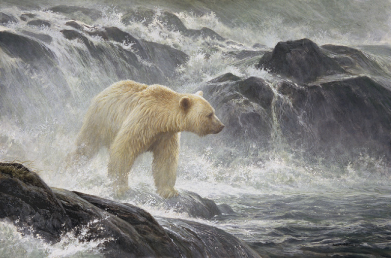 According to Tsimshian legend, Raven, the Creator, went among the black bears of Princess Royal Island and created every tenth bear white as a reminder of the last ice age, a time when the land was covered with ice and snow. He decreed that these bears would live in peace and harmony forever. As a result of isolation and being undisturbed for thousands of years, the bears have no instinctive fear of people, offering humankind a unique insight into truly wild bears.